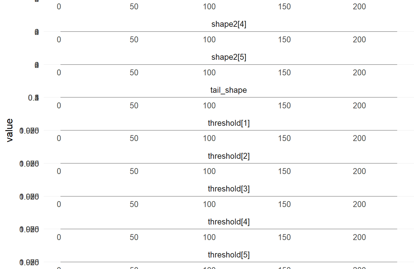 Monitors n = 10 alpha, w[1:5], beta_loc[1:5,1:2], beta_scale[1:5,1:2], shape1[1:5], shape2[1:5], threshold[1:32], beta_threshold[1:2], beta_tail_scale[1:2], tail_shape